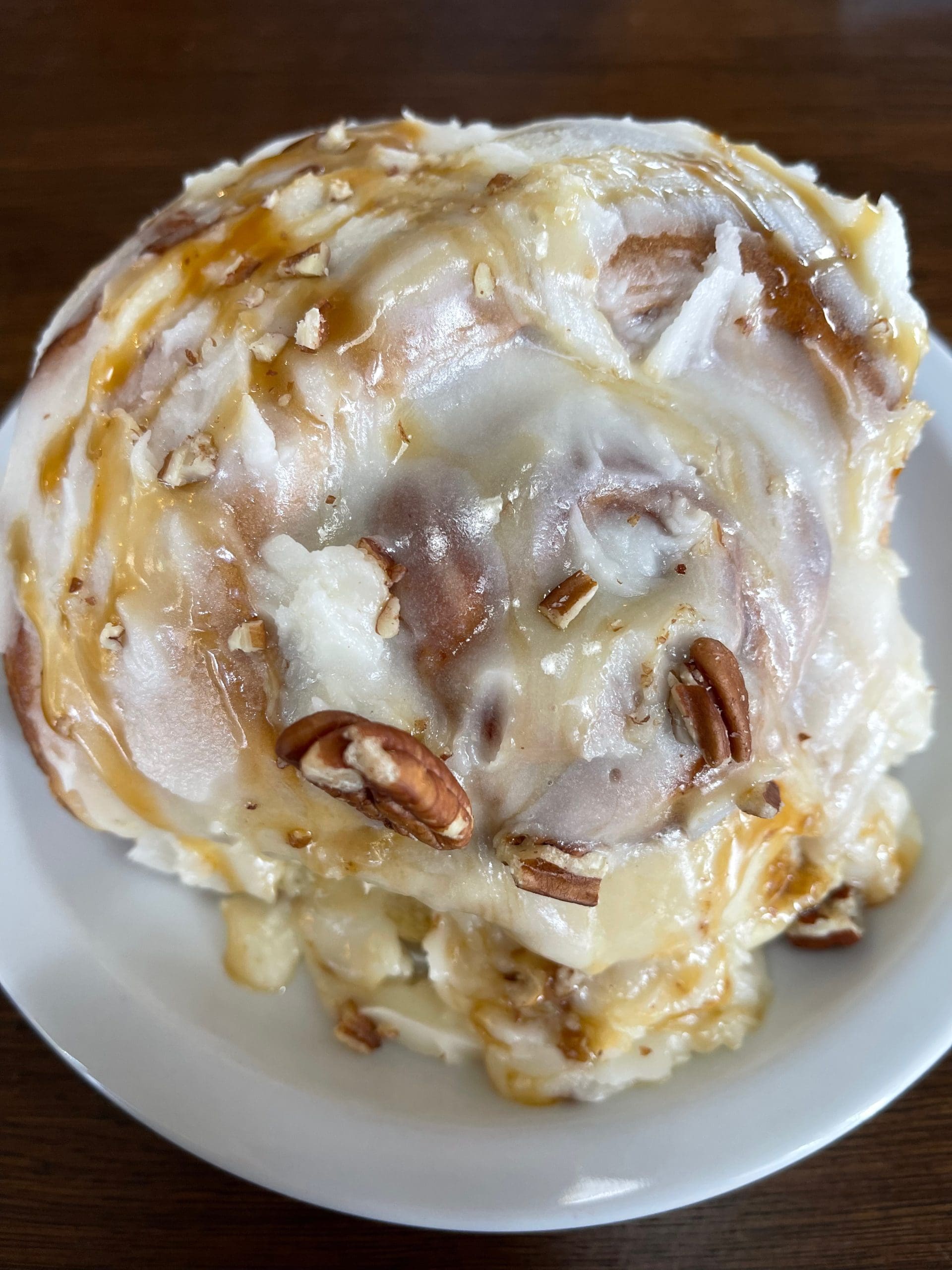 Indeed a menu of copious breakfast and sangwich(sic) items (e.g. pg. 1/2 http://tinyurl.com/y5o95dmj) is sure to meet “American” and New Mexican ‘diner’ palates at everyday prices. My one daughter had an “American” plate of eggs over, sausage patties, hashed browns, and a pancake of which she cleaned the plate. Alas, the other ‘called off’ still being in PJs and illish. I had a Jr. Burrito/of scrambled/ & chorizo as am a not much into breakfast type. Aha! the red chile was nicely piquante with probably some chorizo adding to that. For purposes of this review, I just now and at home, had a taste bite…OK two…of the Sticky Bun I got for tonight. It is 2 x 3 1/2 x 3 1/2 and oozing a cinnamon/nutty flavor even without being slightly heated to melt (or not!), a pat of butter.