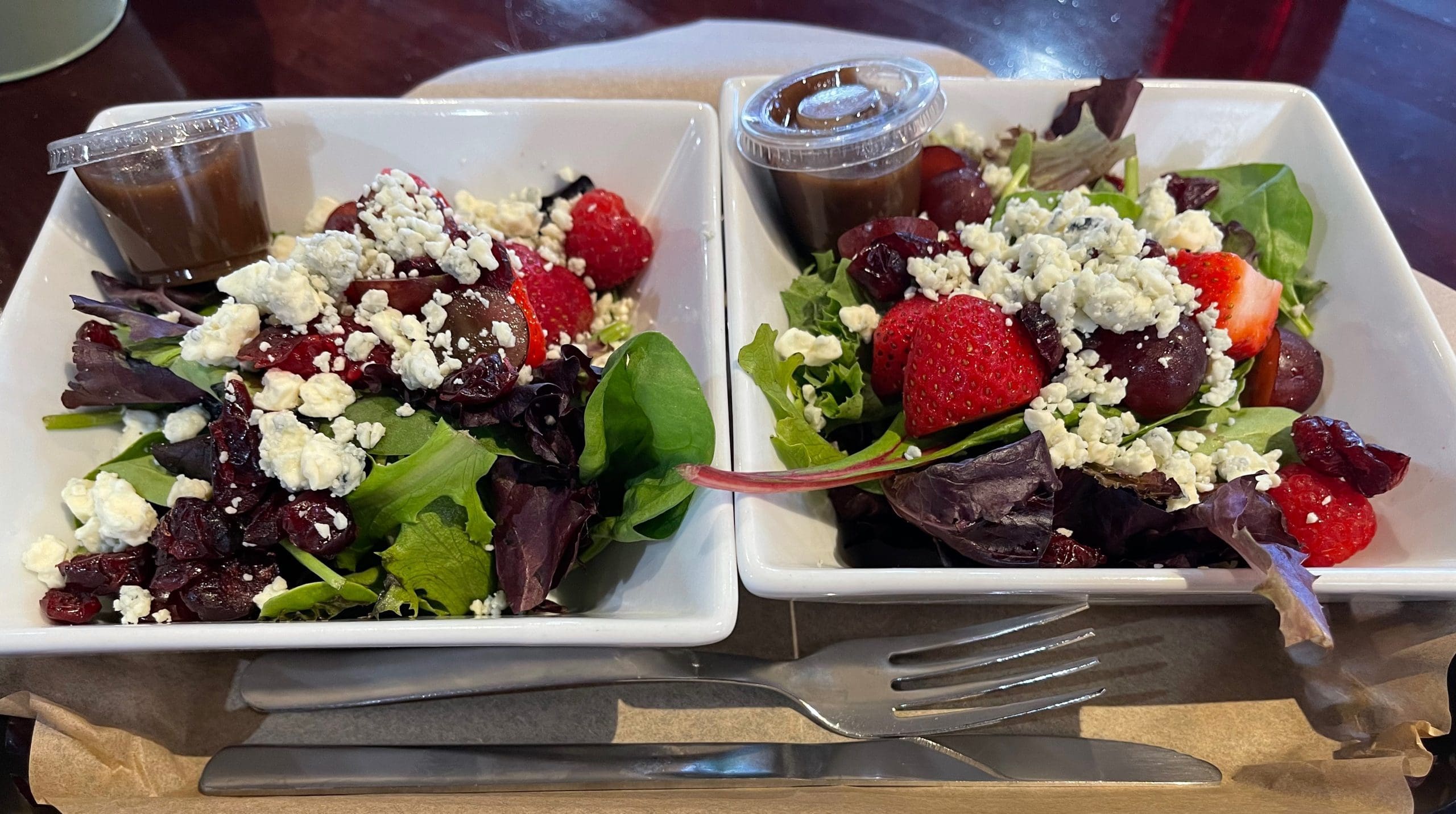 9 July 2022: To the point of keeping things fresh, Relish offers nine salads, some of which should be considered among the very best in the city and all of which are unfailingly “just picked” fresh. You might even happen upon a salad special. Such was our luck during a July, 2022 visit when a Farmer’s Salad (strawberries, mixed greens, grapes, craisins, blue cheese crumbles) was offered. It’s not every farmer who can grow and cultivate such fresh, crisp and delicious ingredients. It’s not every sandwich shop which has the savvy to put them all together as deliciously.