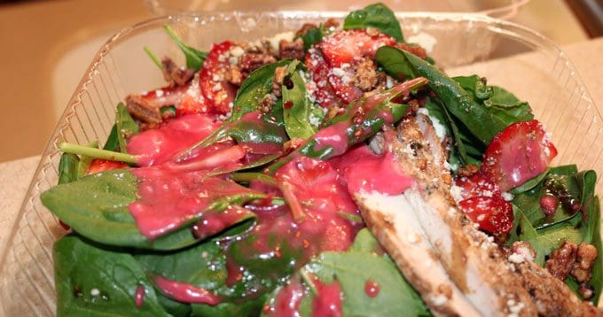 21 May 2016: The salad special of the day during our second visit was an ingredient-laden paragon of leafy green deliciousness. Picture if you will fresh spinach leaves, candied pecans, goat cheese, grilled chicken and tangy strawberries all drizzled with a raspberry vinaigrette. This salad is an exemplar of complementary flavor and texture profiles–from the pungent and sharp goat cheese to the tangy-sweet strawberries and the sweet-savory candied pecans. it’s a thoroughly enjoyable salad which should grace the daily menu. It’s too special to be solely an occasional special-of-the-day.