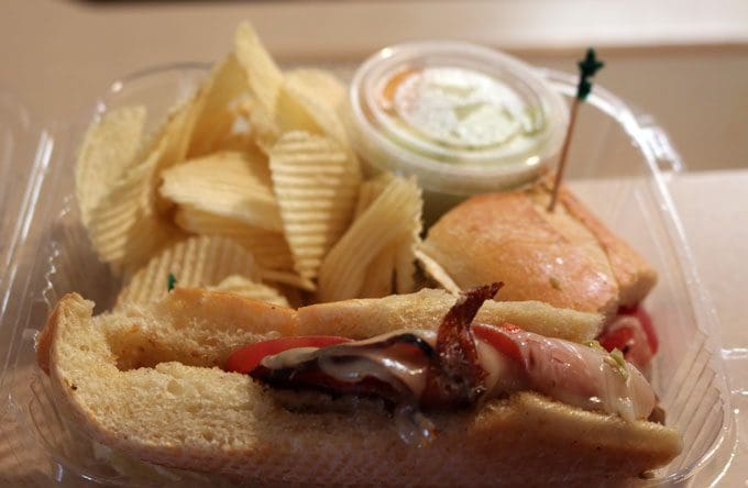 21 May 2016: You probably wouldn’t order a green chile cheeseburger in New Orleans. There’s no telling what passes for green chile in the Crescent City. Similarly, most savvy diners wouldn’t order a muffaletta in Albuquerque. So what does that say about your humble blogger that every time a restaurant offers a muffaletta, it’s destined for our table? Perhaps it says is that I really miss muffalettas which we enjoyed for eight years during our time on the Mississippi Gulf Coast. Savory Fare’s rendition looks nothing like a traditional New Orleans muffaletta (some of which are roughly the size of the extraterrestrial craft which landed in Roswell a few decades ago). While a “real” muffaletta would kick sand in the face of this one, if it was called something else, it would be a more enjoyable sandwich. While the olive spread, meats, ,cheese and bread go very well together, this (to paraphrase Dan Quayle) is no muffaletta.