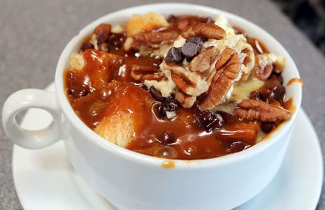 1 August 2015: It’s been a while since I’ve uncovered a great bread pudding to recommend to my friend Larry McGoldrick, the professor with the perspicacious palate. For years, Larry has scoured the Land of Enchantment for bread pudding worthy of inclusion into his Bread Pudding Hall of Fame. There’s a very good chance Savory Fare’s turtle bread pudding will make the list should Larry visit (there’s an invitation implied here, Larry). It’s an outstanding bread pudding with all the turtle elements sweet-toothed diners enjoy so much. That means plenty of warm, gooey caramel and meaty walnuts atop a texturally perfect bread pudding that would be delicious on its own.
