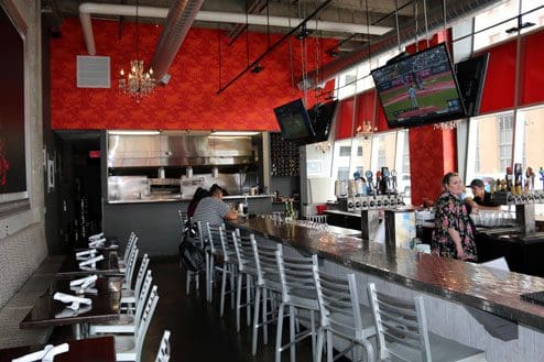 It wasn’t solely the name which experienced a remake. When it was bRgR, large pictures of sad-eyed cows (obviously cognizant of their fates) festooned the walls, evoking not the pangs of hunger, but feelings of guilt among soft-hearted diners. Where the most corpulent cow once dominated the wall now hangs a picture of two comely, long-limbed women flanking a large letter Q. Perhaps if Mayor Marty had employed similar pulchritude in promoting his vision for “The Q,” at least those of us sporting the XY-chromosome pairing would have embraced it…much as we embrace the flat screen televisions suspended over the bar and tuned to sports channels. Most men won’t even notice the chandeliers hanging from the vaulted ceiling unless it’s to appreciate the quality of the chains holding them in place.