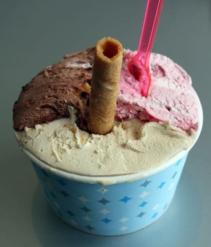 Summer’s heat in Italy is probably why Andrew Zimmern, host of the Travel Channel’s Bizarre Foods Delicious Destinations program described gelato as “Italy’s air conditioning,” a phrase coined by Faith Willinger in 1996. More specifically, she called gelato “oral air-conditioning, the only food that Italians will eat on the street.” Aside from its cooling properties, both Zimmern and Willinger wax poetic about the sheer deliciousness of the cool, creamy, refreshing treat Italians have perfected.