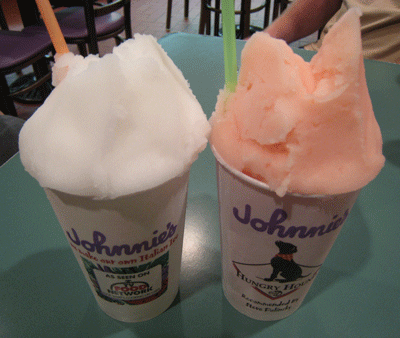 The marriage of hamburgers and French fries has nothing on the combination of Italian beef sandwiches and French fries, particularly when those Fries are thin-sliced, served steaming hot and with a nice amount of salt. There’s nothing better to wash down all that delicious saltiness than one of Johnnie’s banana or lemon flavored Italian Ice, which is, what else, among the very best I’ve ever had. Better still is the watermelon Italian ice which comes with a warning that watermelon seeds might be found in the frozen delicacy.