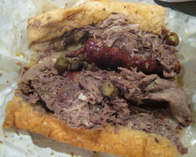 The walls at Mr. Beef are adorned prominently with photographs of the glitterati who consider their Italian beef the very best in the city. Tonight Show host Jay Leno considers Mr. Beef’s his very favorite while Roadfood.com founder Michael Stern, a Chicago native, casts his lot for Al’s Beef. Both Al’s Beef and Mr. Beef are very popular choices. They’re also very safe choices. They’re “in the city” choices with top billing on just about every travel guide you’ll find for Chicago. I’ve tried both and found them both quite good, but in my estimation they’re not the very best.
