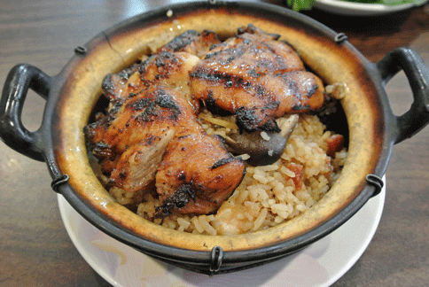 30 August 2009: Every time we think Vicky has outdone herself with an entree that surprises us, we uncover another dish we swear might be better than anything else on the menu. That makes it difficult to pinpoint one favorite. Instead, you’re bound to find one new favorite every visit. During an August, 2009 visit, we discovered the special clay pot rice with grilled chicken (#70 on the menu). Clay pot cooking is popular throughout Asia where the clay pot is used as both pot and serving dish. As you eat, the clay pot remains piping hot throughout your meal which allows the slightly smoky sauce of chicken simmered and slightly caramelized on the pot to waft invitingly for the duration of your meal.