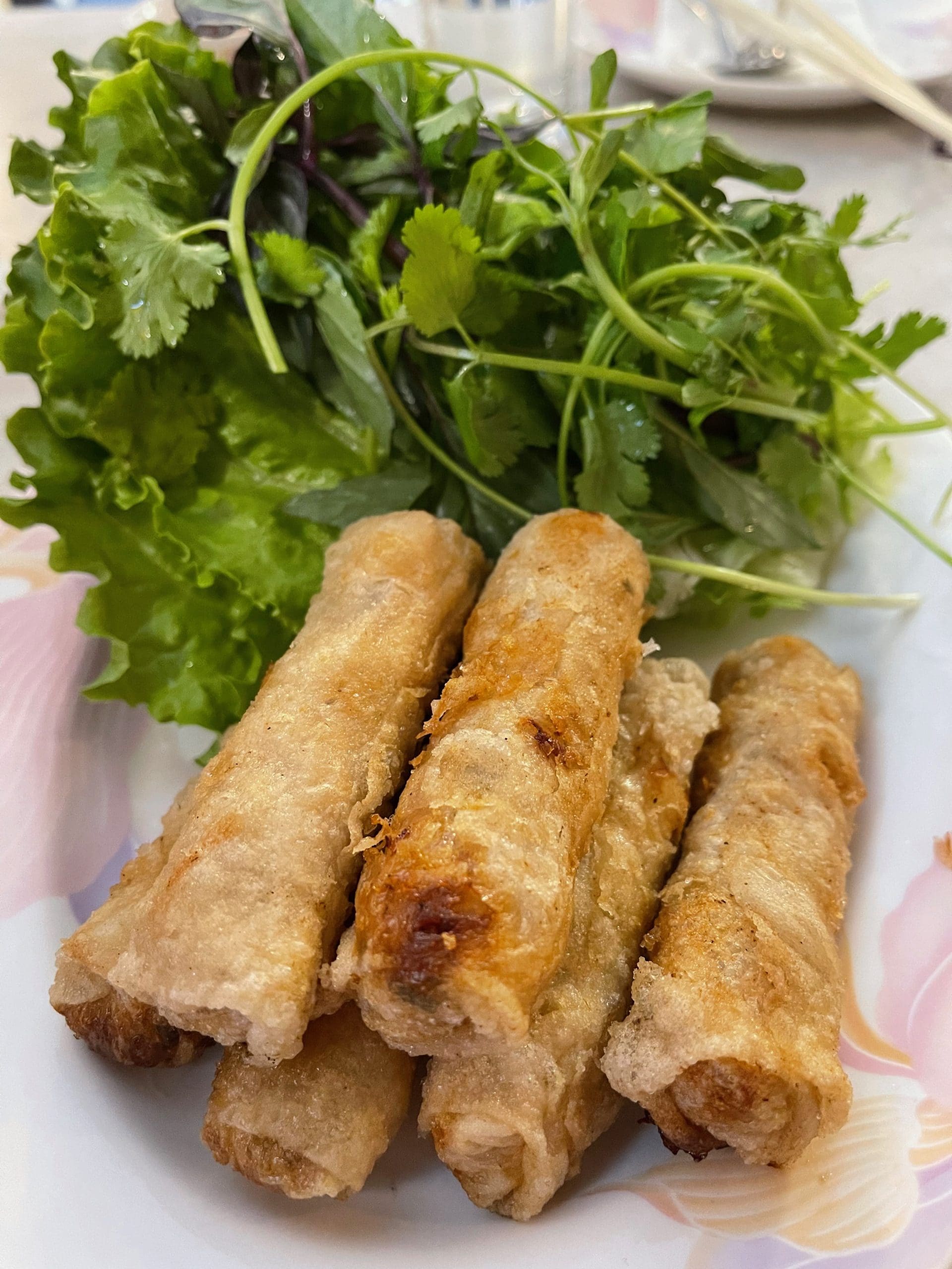 If you ever espy a diner at one of the Duke City’s Vietnamese restaurants wrapping something that’s already wrapped (egg rolls) in lettuce, chances they picked up that habit at Saigon under Vicky’s tutelage. It’s the way we now like them, but only at Saigon. We’ve found no other egg rolls worthy. My friend and colleague Tuan Bui who lived in Vietnam until age 12 had never had egg rolls wrapped “Vicky-style,” but he’s hooked. The fresh greenery adds textural and freshness components to the egg rolls.