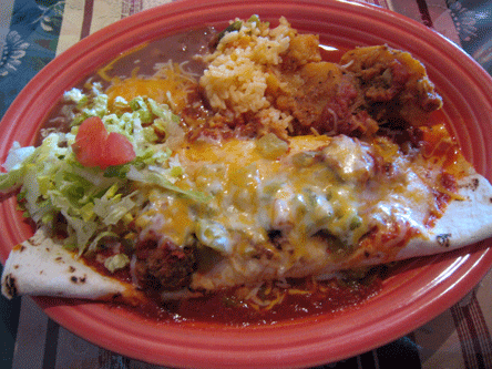 Not only was the pork neither moist nor tender, Gil, I was convinced that it wasn’t pork. I would need to submit the meat to a DNA test to be sure, but I coulda’ sworn that we were served chicken adovada. Not sure how the mixup happeneed, but that had a lot to do with my dissatisfaction with the dish. I like my adovada with pork. Having said that, the carne chile sauce left something to be desired, on that we can agree.