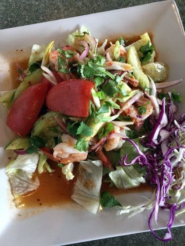 8 January 2016: The Thai Spice salad menu lists eight different salads, ranging from the traditional larb to a seasonal mango salad. With both my visits transpiring in January, the mango salad wasn’t available, but it’s hard to call the shrimp salad a consolation prize. This salad is constructed with green onions, red onions, tomatoes, cucumbers, chili and cilantro on a bed of lettuce. An ingredient not listed is sugar yet it makes its presence felt (although not nearly to the degree it does on the Pra Ram). The ingredients on this salad are fresh, invigorating and complementary. Better still, the salad showcases the balance of flavors that is the hallmark of Thai cuisine.