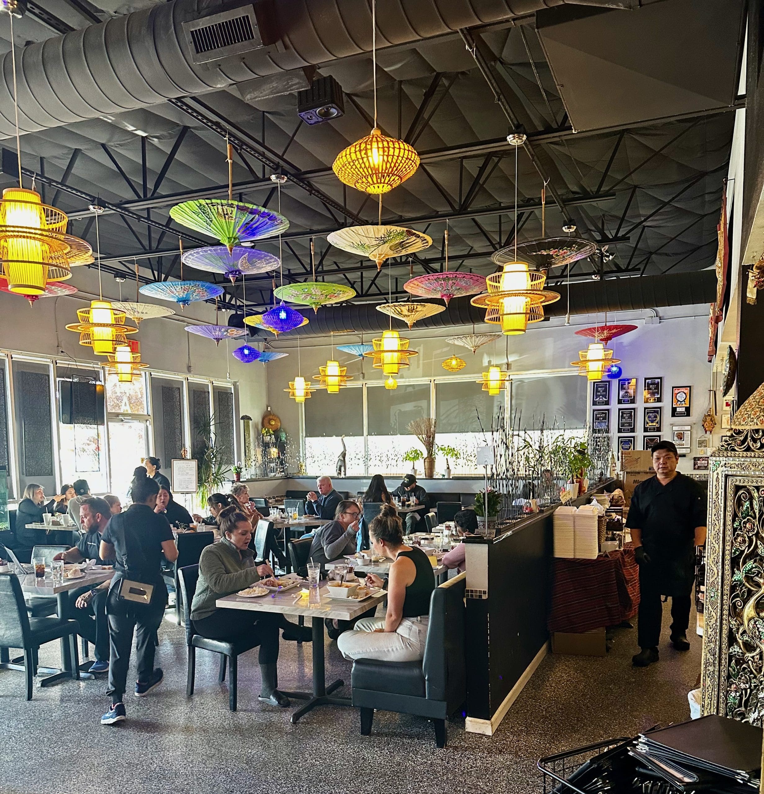 Looking around the restaurant, it certainly didn’t seem to matter to the throngs of diners seated and those queued up for a seat to become available. Thai Spice is evidently a very popular restaurant, a fact borne out not only by lunch crowds but by mostly fawning reviews on Yelp and Zomato. One Yelp commentator even indicated “the food here tastes just like it does over there” (in Thailand). Further, the restaurant’s general manager told the Albuquerque Journal that “It’s called Thai Spice for a reason–it’s spicier than other Thai restaurants.” Bill and I can handle (and would welcome) a slight overemphasis on spiciness, but sweet we can’t abide.