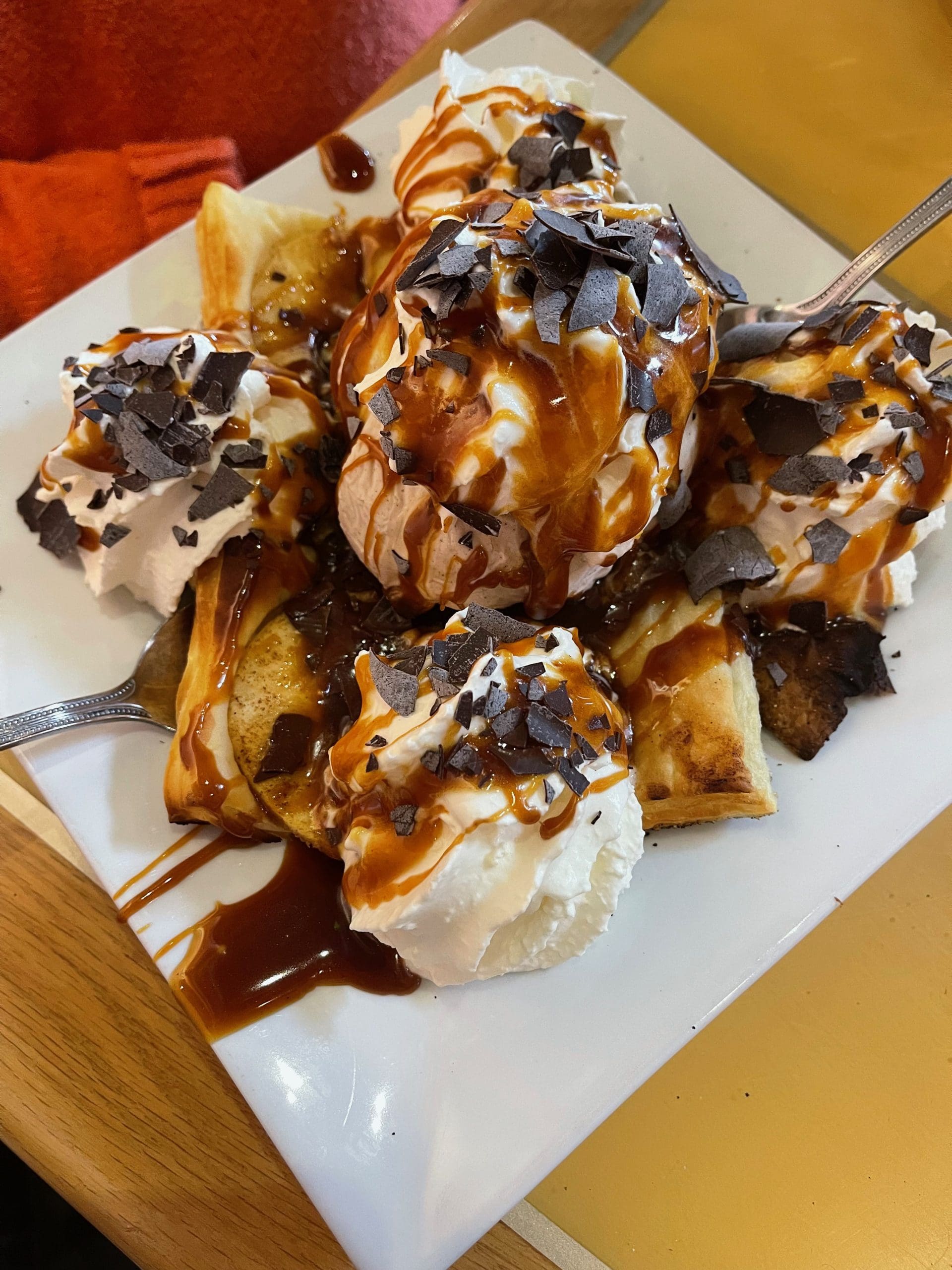 Scarpas torta di meli is one of the most popular dessert items in the City. This specialty dessert is easily big enough for two to share. It starts with a warm puff pastry apple tart baked in the wood burning brick oven then it gets even better from there. This pastry is topped with your choice of either Vietnamese cinnamon ice cream or Cappuccino Commotion ice cream (both are deliciously decadent), cinnamon, caramel sauce, whipped cream and shaved dark chocolate. Unfortunately you can’t have both ice creams because portions are measured. Still, with either ice cream, it’s a delicious dessert you won’t soon forget. Nor will you forget the smokiness of that dark chocolate.