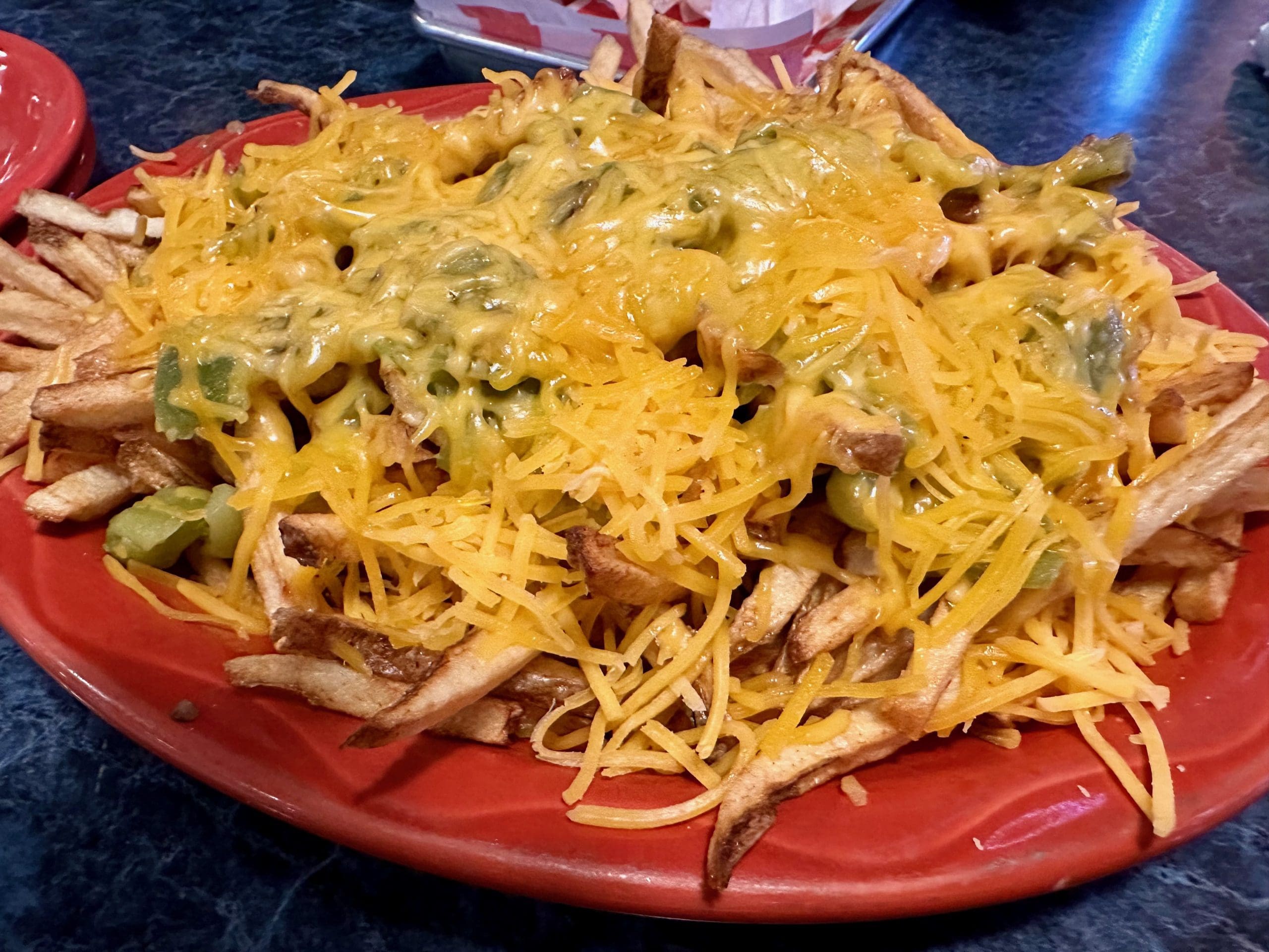 7 February 2024: Few things go as well with burgers as French Fries, a culinary marriage that works best with crispy fries that don’t start off frozen and in a bag. At Spinn’s the fries are freshly cut and fried to order and are golden brown and delicious. They’re easily some of the best fries in Albuquerque, by far better than the out-of-a-bag aberrations. Even better are green chile cheese fries which are made with real cheese, not that gloppy Nacho cheese New Mexicans hate. They’re also made with chopped up green chile, not a chile “sauce.” Spinn’s onion rings are large and sweet (possibly Vidalia onions) and are among the best restaurant onion rings on the West side.