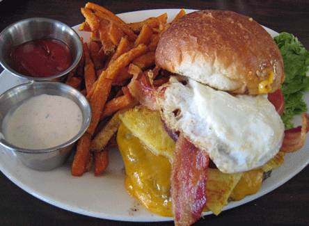 30 January 2011: Perhaps residents of the Badger State have an affinity for unhealthy foodstuffs which start with the letter “B” (beer, brats, burgers) because in Wisconsin you can’t spell burger without butter. Artery-clogging Wisconsin butter is slathered on both sides of the Wisconsin butter burger which is then topped with cheese. My friend Dale, an ectomorph from the Green Bay area loves the Standard Diner’s Bourbon Butter Burger upon which is slathered a bourbon-maple compound butter. It’s about twice the size of many of the butter burgers proffered throughout the Milwaukee area and ostensibly has at least as many calories. Though this burger should come standard with an angioplasty, it’s a very good burger.