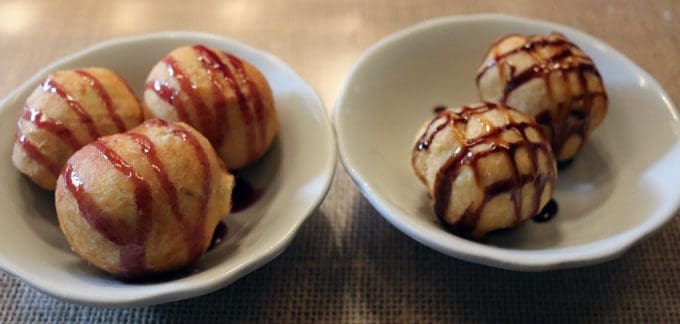 The dessert menu is scrawled on a strategically placed slate board you’ll ponder throughout your meal. It features such intriguing items as a ricotta cheesecake, baklava and pecan pie, again all housemade and made from scratch “with love.” You can certainly taste the love in the Loukoumades, a type of Greek doughnuts (or more closely resembling donut holes). Where traditional Loukoumades are generally served with honey syrup and cinnamon, the Olive Grove takes creative liberties. The Olive Branch injects chocolate and caramel into the center of a Loukoumades and tops them with even more chocolate and caramel. What could be better. Well, maybe one with key lime in the middle or one with cherry and peach. Served piping hot, they’re a delightful treat.