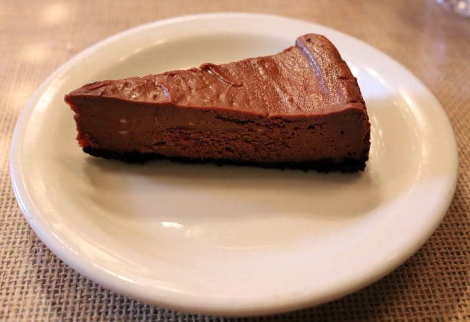 Another Olive Branch specialty is the restaurant’s chocolate cheesecake. Delightfully dense cheesecake on a Graham cracker crust–what’s not to like? Chef Ryan Seabrook admits to not liking chocolate, but to enjoying this cheesecake which he told us “tastes like ice cream.” It does indeed, albeit room temperature chocolate ice cream that doesn’t melt. Sweet and delicious as these desserts may be, they pair well with the restaurant’s pomegranate-lemonade, a thirst-slaking beverage that’s sweeter and not as tangy as regular lemonade.