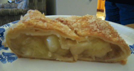 On Hogan’s Heroes, a popular television sitcom of the 1960s based on American prisoners of war incarcerated in a German stalag, the prisoners knew food was the key to acquiring information from Sergeant Schultz, the zeppelin-sized sergeant of the guard. Sergeant Schultz’s biggest weakness was apple strudel, a dessert the POWs French chef prepared especially well. One bite of the Apple Haus’s apple strudel and you might not be able to keep a secret either. This is the very best apple strudel I’ve ever had, constructed with thin layers of thin pastry crust topped with a large crystal sugar surrounding sliced, peeled apples. Unlike commercial strudel which is often made with more pectin than actual apples, this rendition celebrates the apple in its most crispy and delicious ways.