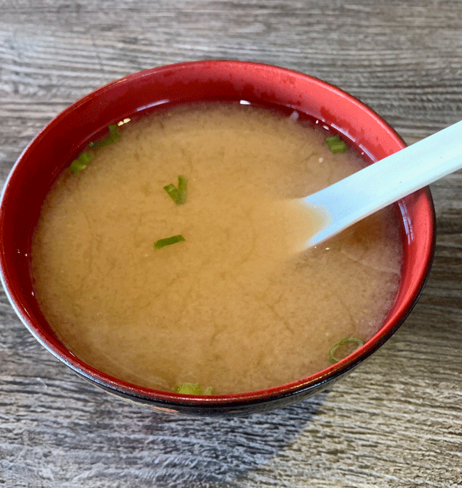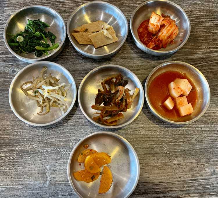 23 October 2019: Kalbi is the first item listed on the “Korean Specialty Plates” section of the menu. It also has a prominent place on a paper-based menu of dinner-for-two offerings where you can combine a number of Korean barbecue items served with “all the trimmings” and perhaps a bit of “sticker shock.” Dinners for two are prepared by servers at your table on tabletop grills. Specialty plates are served with Korean small plates called banchan (which literally translates to “side dishes”) and a bowl of miso soup. Had it been served more than lukewarm we might not have found it so unremarkable. All the usual ingredients (seaweed, bonito flakes, cubed tofu, scallions) are in perfect proportion and it’s less salty than some miso soup tends to be, but on brisk days, hot soup would be appreciated.