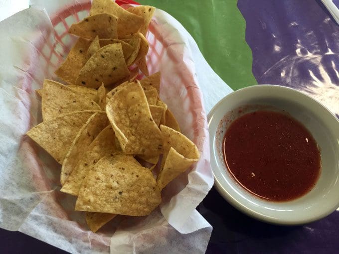 Pana’s is currently open for breakfast and lunch Tuesday through Saturday. Breakfast is served from 8AM through 11AM and lunch is served from 11AM through 3PM. Among the smattering of breakfast items are pancakes, huevos rancheros and breakfast burritos. Lunch plates–which include beans, rice and two sopaipillas—feature such traditional New Mexican favorites as tamales, chile rellenos, enchiladas, tacos, burritos and a phalanx of ala carte items. “This and that” are available in the form of guacamole and chips, salsa and chips, a Frito pie or a hamburger with fries. As you peruse the menu, a bowl of salsa and basket of chips are ferried to your table. The chips are crispy and thick, ready to scoop up as much salsa as you’re able to lay on them. Alas, the salsa is a bit on the thin side and is better for dipping than for scooping. The jalapeno-based salsa has very distinctive flavor notes courtesy of cumin and bay leaves (yes, bay leaves). It’s not especially piquant, but it’s quite good.