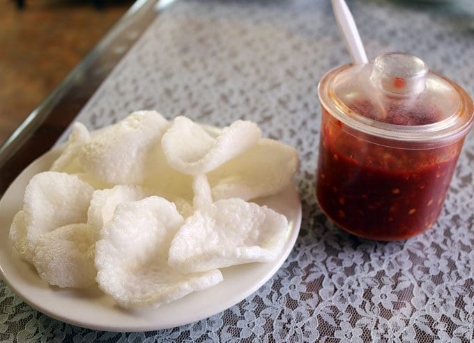 24 June 2016: Following traditional New Mexican restaurant practices, An Hy Quan delivers complimentary Vietnamese “chips and salsa” to your table. They’re not chips and salsa as you’d enjoy them at say, Mary & Tito’s Cafe. They’re chips and salsa as they might be served in Vietnam. The chips are made from fried potato starch. Texturally they resemble the packing peanuts you shove into boxes to protect your delicate valuables. The salsa is a chili sauce with a nice level of heat. Instead of dipping the chips into the sauce, you’ll spoon it on as liberally as your taste buds can appreciate.