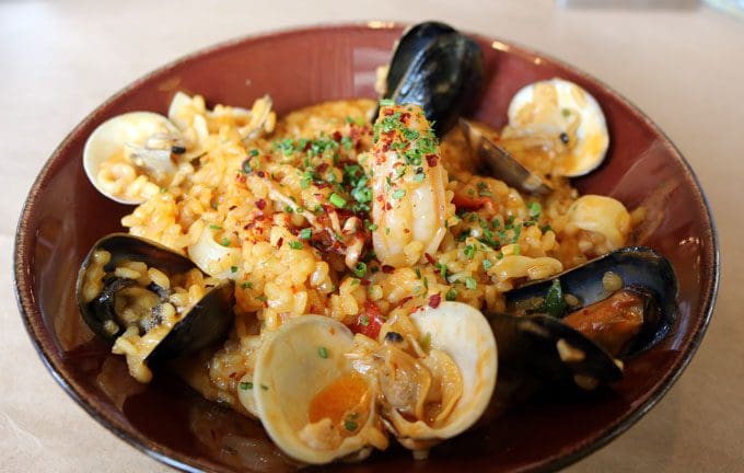 20 August 2016: If Risotto Fruit Di Mare had been on the Torinos @ Home menu when the Maxime performed his magic in the kitchen, we must have missed it. More likely it’s one of the new items on the menu introduced by Chef John. Don’t dare miss it! The arrival of the dish (al dente Arborio rice with shrimp, little neck clams, calamari, mussels, clam juice and star anise) is preceded by an aroma one normally encounters only at Vietnamese restaurants. It’s the inimitable, alluring aroma of star anise, an aroma that permeates each grain of rice with its subtle licorice-like flavor. The risotto with its very clean, very fresh flavors and the slight and subtle undertones of anise, is a perfect complement to the fresh, almost off-the-boat flavors of the seafood. Several years ago, I lamented the scarcity of good risotto in New Mexico. Since then a number of restaurants have risen to the challenge and now serve very good to outstanding risotto dishes. Mark Torinos’ as one of the latter.