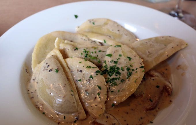 20 August 2016: The ravioli of the day concept may not have been long-lived, but it certainly had an enduring effect on diners. The challenge for my Kim was whether to have the roasted beet ravioli (beets, ricotta and Parmesan cheeses stuffed in a ravioli, topped with golden raisins, walnuts, poppy seeds and more Parmesan cheese drizzled in light butter sauce) or the Porcini Ravioli (white truffle, porcini mushrooms, cream and Parmesan cheese), a vegetarian offering. It was a very good choice. Earthy, rich-flavored porcini mushrooms impart a pungent, woodsy flavor to the ravioli. The white truffle lends similar qualities. If you love full-flavored fungi, this is the dish for you.