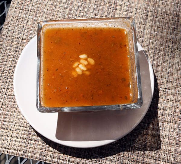 14 April 2018: The Food Network’s Barefoot Contessa, Ina Garten calls grilled cheese and tomato soup “the ultimate comfort meal.” She certainly wasn’t talking about Campbell’s condensed tomato soup which goes better on Andy Warhol’s 1968 painting than it does on any kitchen table. She was talking about the delicious cure-all for whatever ails you, a tomato soup with the flavor of vine-ripened tomatoes. A great tomato soup embraces you like a warm hug. A superior tomato soup also includes basil, an invigorating, fragrant variety that lends oomph to any Italian dish. Torinos’ tomato basil soup is studded with pinon which lends just a bit of piny freshness. This soup takes the chill out of winter.