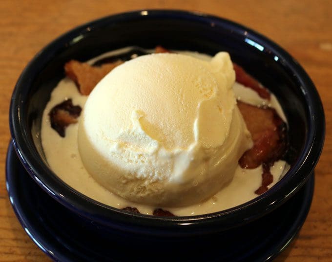 There was only one item on the menu we didn’t enjoy, the cherry cobbler. After going two-for-two with outstanding cobbler dishes at The County Line Restaurant and Eclectic Urban Pizzeria and Tap House, we thought a trifecta might be possible. Twas not meant to be. We managed to locate only one cherry in the cobbler, a gelatinous pectin-packed mess topped by a very good crust and a generous scoop of vanilla ice cream. Since the theme of this review seems to be small town, we can only hope there are cherry trees in Bernalillo. Casa Diaz is too good a restaurant to serve cherries from a can.