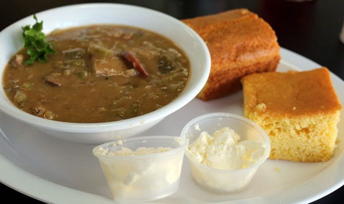 2 October 2016: Gumbo is an archetypal Cajun offering and almost inarguably the most popular dish ever conceived in Louisiana (as emblematic of the Bayou State as chile is to New Mexico). It’s a veritable melting pot dish, transcending all class and income barriers. With a fragrant bouquet that precedes it, a steaming bowl of good gumbo is one of life’s most satisfying pleasures. K’Lynn’s offers two options for its gumbo: Andouille sausage and chicken or shrimp. We can’t speak for the version made with shrimp, but the version made with Andouille sausage and chicken is “close your eyes and let the aroma and flavors wash over you” satisfying. It goes without saying that it pairs best with cornbread, some to sop up that great gumbo and some cornbread with lots of butter.
