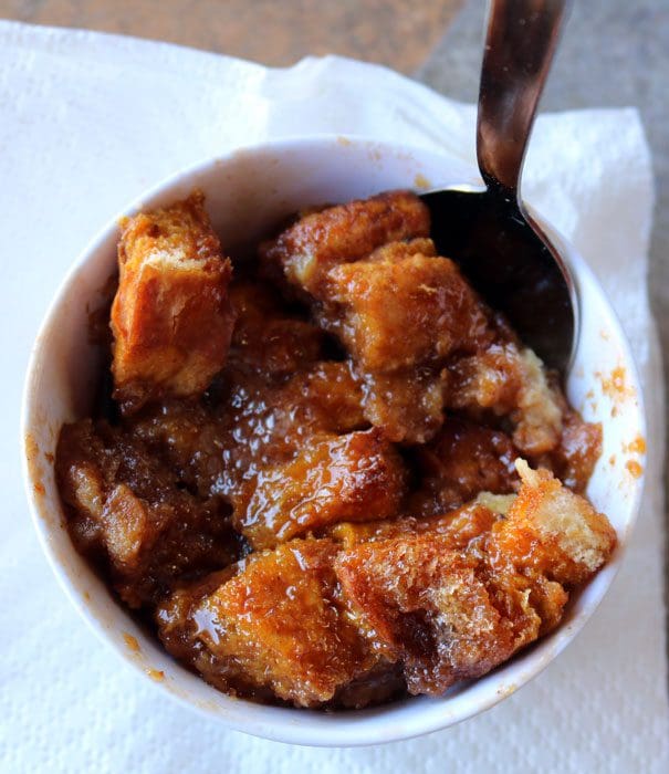 Just how prevalent is pumpkin spice? You’ve probably experienced it on coffee, donuts, liqueurs, syrup, cookies and maybe even on chicken wings, but did you know there’s a Napa Auto Care Center in Albuquerque that offers “pumpkin spice oil changes?” Obviously the Tin Man of Oz would probably enjoy that oil change more than your car would. For the rest of us, K’Lynn’s offers a magnificent pumpkin spice bread pudding and it’s worthy of inclusion in Larry McGoldrick’s Bread Pudding Hall of Fame. There’s just enough pumpkin spice to let you know it’s there. That’s true also of the amount of sugar used. It’s not cloying as some bread pudding tends to be. You should probably wait a few minutes to dig into it as it arrives at your table plenty hot.