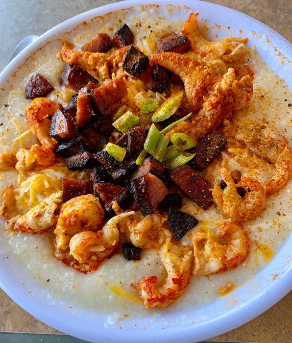 3 May 2019: Maximum Ride: The Angel Experiment, one of James Patterson’s 1,300,452 novels may have best expressed what most people think of grits: “Popcorn for breakfast! Why not? It’s a grain. It’s like, like, grits, but with high self-esteem.” That’s probably not a paragraph Patterson could read aloud in the Deep South where grits are as revered as Lynyrd Skynyard music and sweet tea. “Like grits, but with high self-esteem” makes grits sound like the canned beans hobos cook over a campfire. Maybe Patterson has never had good grits. He should visit K’Lynn’s Southern & Cajun Fusion Cuisine.