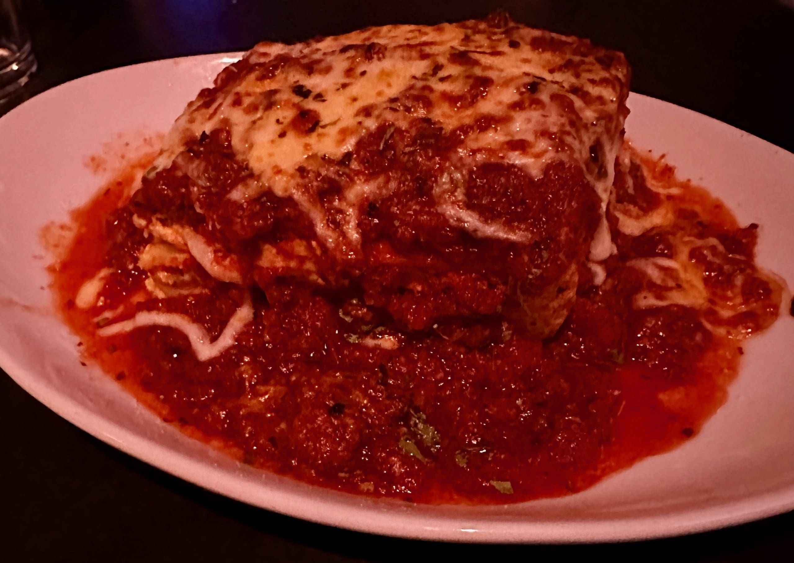 27 July 2024: Tim, my brother-in-law who’s been enjoying his Italian wife’s cooking for more than two decades declared Trombino’s lasagna “9 out of 10.” That’s as close to perfect as any lasagna he’s ever had and equal only to the lasagna at Joe’s Pasta House (which Yelp rates as one of the 20 best in the country). It’s layers and layers of love. Well, actually it’s homemade baked lasagna made with fresh pasta, tomato meat sauce, mozzarella and fresh ricotta cheese. The blend of mozzarella and fresh ricotta is especially noteable. Mozarella blankets the lasagna like a molten tarpaulin while the fresh ricotta provides milky and tangy notes. It’s cheese in two part harmony. The tomato meat sauce has a nice acidic tang which infiltrates layer upon layer of lasagna noodles. This is a very good lasagna!