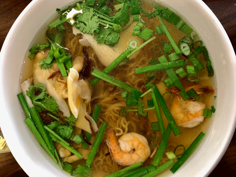27 September 2019: Culinary cognoscenti believe the term “wonton” comes from “wahn tan” which literally means “swallowing clouds” because of the way these savory dumplings look when floating in soup. Though their genesis is Chinese, wontons are prominent in the cooking of several Asian nations, including Vietnam. Saigon 2’s won ton egg noodle soup is a delicious surprise, as much for the size of these dumplings as for their deliciousness. These look like wontons on steroids, stuffed generously with a pork and mushroom amalgam. Shrimp and pork strips are the featured proteins on this savory, steamy elixir, but discernible herbaceous notes are also apparent.