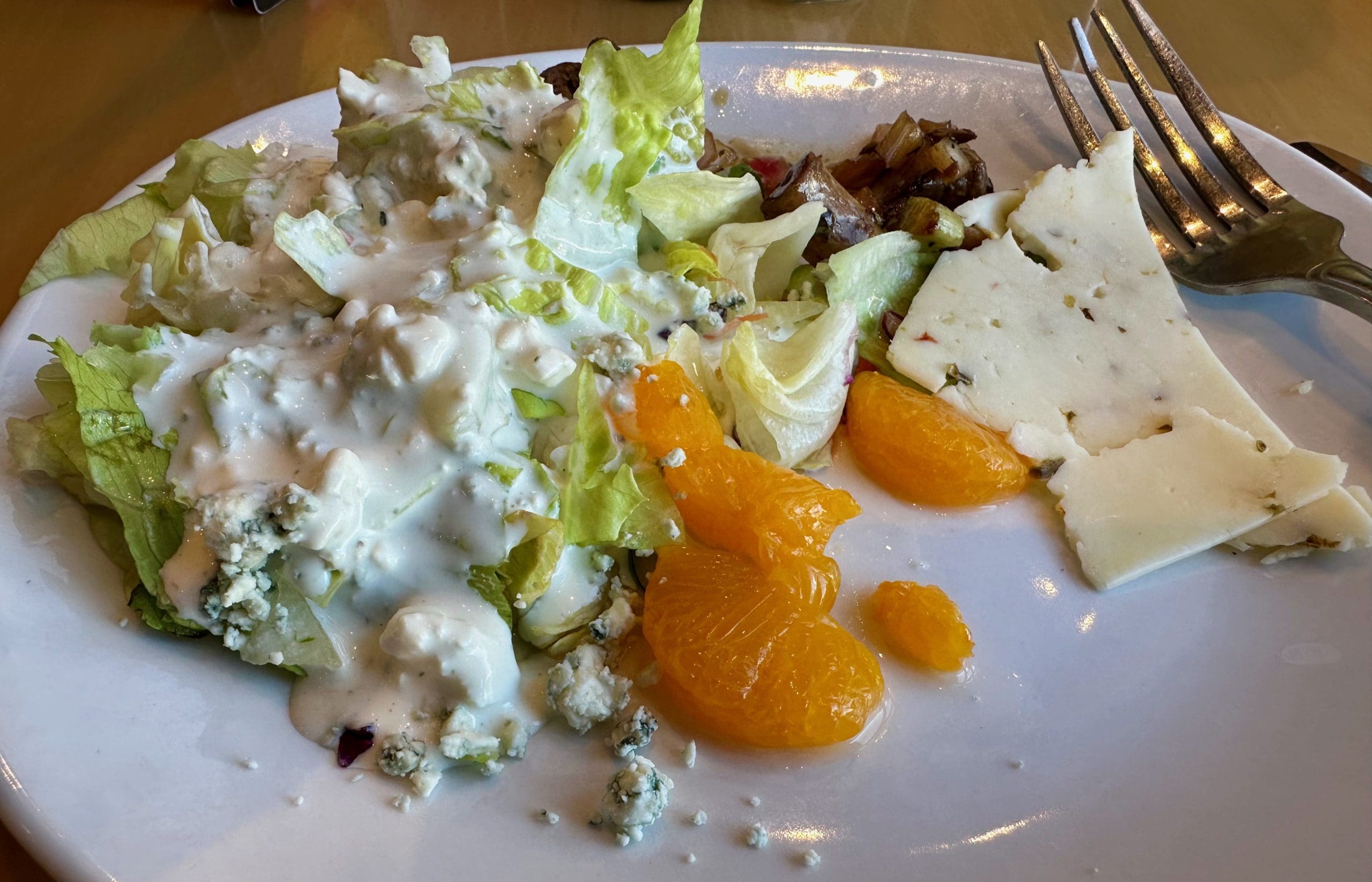 By itself, the unlimited salad festival is worth the cost of the churrasco. Only in Las Vegas, Nevada will you find a salad bar with such assortment–and sprawl. Magellan’s circumnavigation of the world didn’t take as long as a trip around the salad bar. Of course, Magellan didn’t stop to gawk at the vast expanse of Albuquerque’s most varied and generous salad bar while trying to figure out how much “salad” you can eat while still gorging yourself on meat. Not that you can’t find meat on the salad bar. You can find beef stroganoff, lobster bisque, sushi, fruits and a dizzying array of items not usually categorized as salad ingredients. For a turophile like me, a trayful of blue cheese crumbles meant having a more traditional salad in addition to the unconventional items on display.