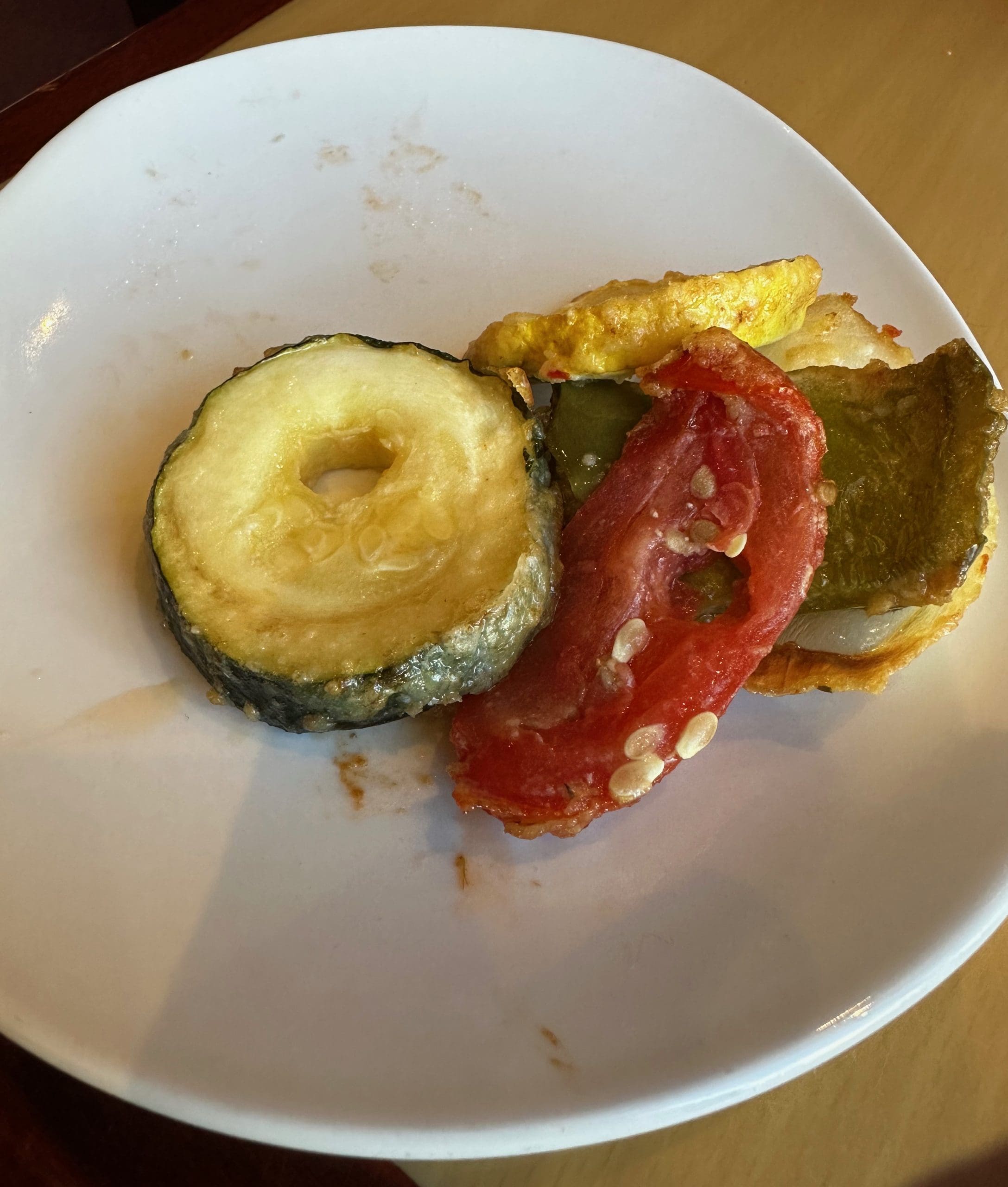 Vegetarians can probably have a go at the unlimited churrasco and still find plenty to enjoy. In addition to the non-meat items on the salad festival, a server will likely ferry skewers of legumes (grilled vegetables) to your table. While some carnivores seemed to eschew the legumes with the same facial expression they might have for a roach crawling up their arm, I found the legumes (zucchini, tomato, green pepper, onion) prepared very well. Just slightly caramelized, the onion was sweet, savory and delicious. It baffles me how so many diners dislike onions. It was my favorite of the garden bounty.