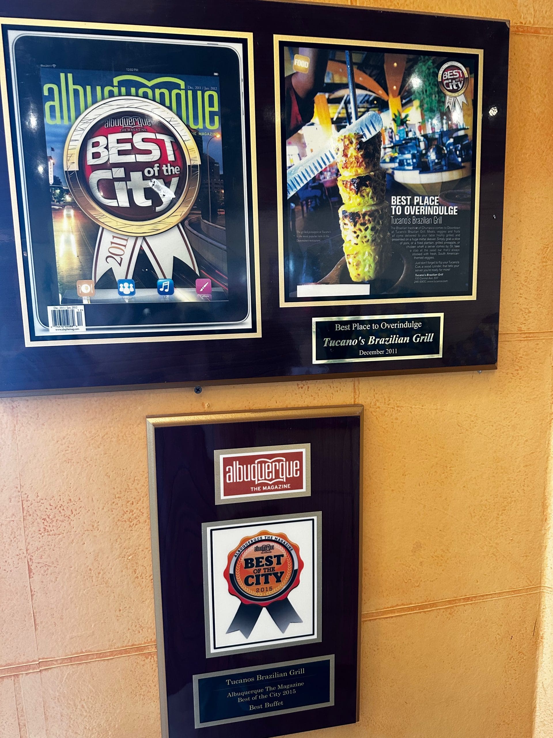 Just as the buffet is replete with fresh items, in 2023 Tucanos closed the restaurant for two months to undertake a $1.5 million remake..a refresh so to speak. The already sprawling restaurant is even more commodious with the removal of columns, giving the illusion of even more spaciousness than before. Grandeur and splendor were added in the form of art inspired by Rio De Janeiro on the ceiling and along the bar. The Dude-friendly patio is comfortable year-round with an overhead shelter, new air conditioning and heaters. It’s a transformation that places Tucanos in the top tier of Albuquerque restaurants in terms of ambiance.