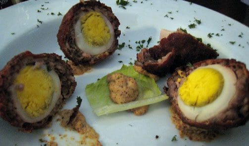 17 November 2012: The menu is more akin to what we were familiar at Irish restaurants than what most pubs serve. That means such appetizers as Scotch eggs, hard boiled eggs encased in sausage and covered in bread crumbs then deep-fried to a golden brown and served with pub (Boar’s Head) mustard. Contrary to its name, Scottish eggs are far from being Scottish. They were originally created in 1738 by a London-based department store. More often than not, Scotch eggs are served cold and even though that isn’t the case at the Tavern, these are more than passable. The sausage is mildly spicy with notable herbaceous qualities and the bread crumb covering is not too thick and has a crispy texture. The hard-boiled egg is perfectly prepared.