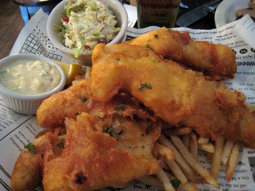 As I previously praised the Fish n Chips, I would quote their current menu https://www.2foolstavern.com/menu/ notes: THE TWO FOOLS FISH & CHIPS$24.95Our Award winning recipe begins with Two Pieces of our house ale battered, sustainable, North-Atlantic Haddock, served with chips, Homemade apple coleslaw & tarter sauce.