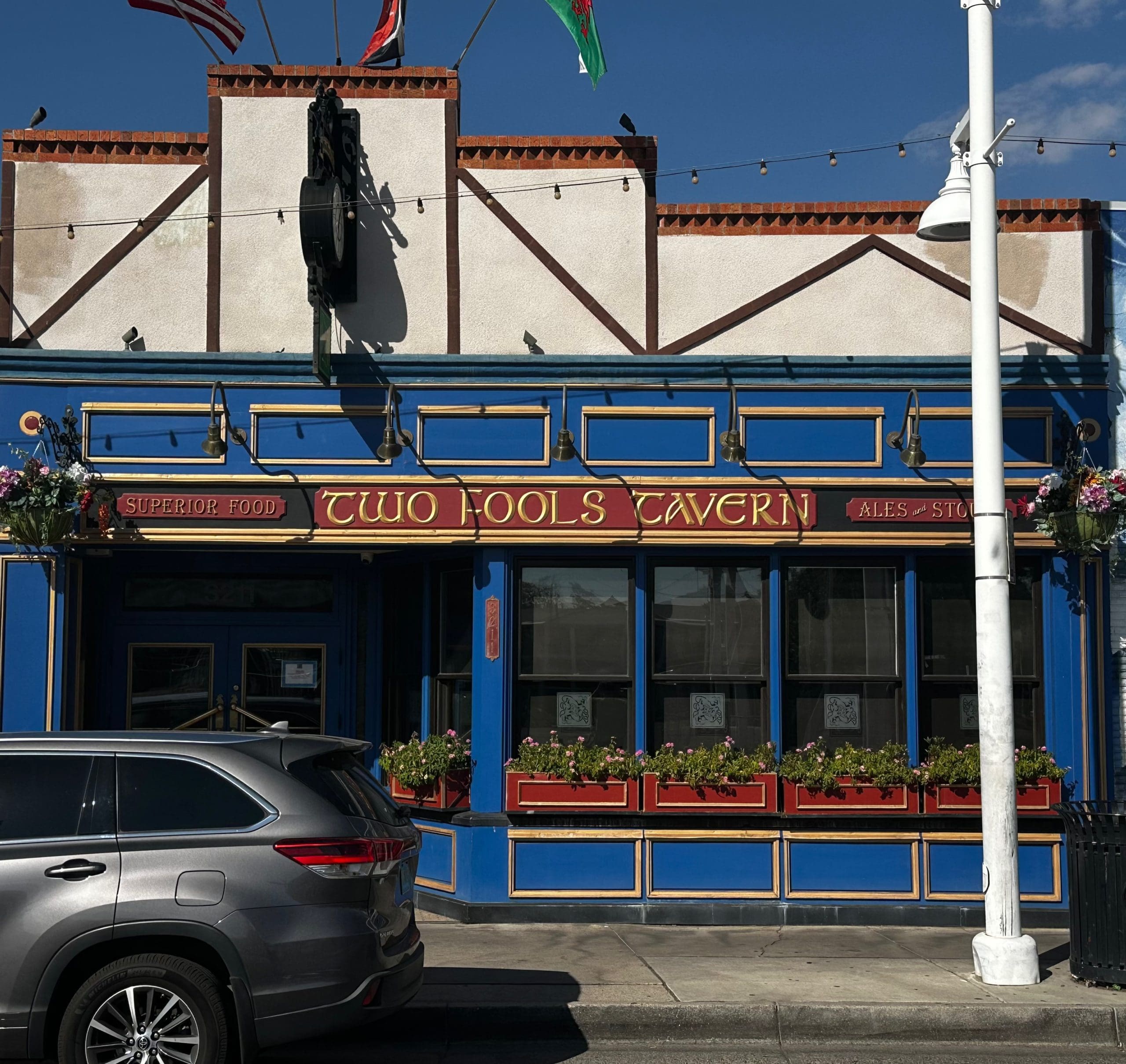 A defining element of a pub’s identity is its exterior signage. Public houses throughout the British Isles have been required since the 12th century to erect signs outside their premises. Typically, a pub’s signage will include both the pub’s name and a graphical element (essential because in the Middle Ages, a large percentage of the population was illiterate). A pub’s name and graphical identity tell a lot about its character. The name Two Fools Tavern along with its graphical identity of two harlequin-style buffoons seems to convey a fun and relaxed ambiance. In that respect, it fits right into the Nob Hill district.