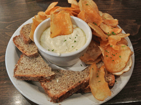 “served with housemade Irish brown bread and Irish potato chips”