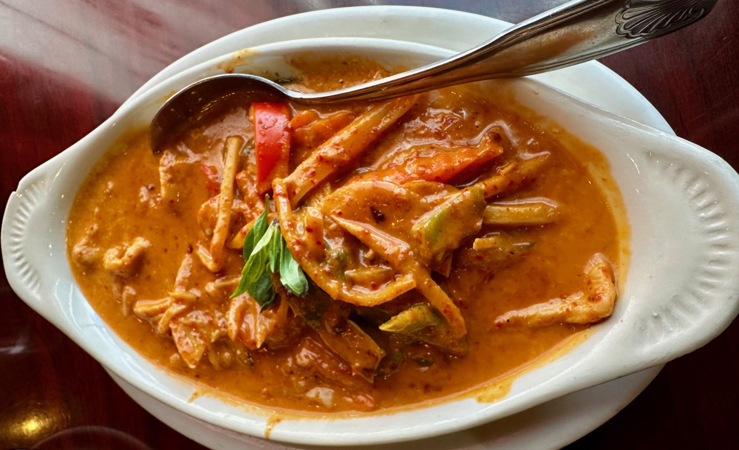 In truth, curry is a dish to which I graduated after having explored the myriad of other Thai food options. While Thai restaurant menus are replete with zesty, spicy, flavorful dishes, curry dishes are the pinnacle of deliciousness. Curry is Thai food self-actualized, Thai food as good as it possibly can be–complex, bold, pungent and aromatic. Curry satisfies my need for balance and order with sweet, savory and piquant notes in perfect proportion. It’s layered with comforting richness and soul-warming flavor. So why deprive myself?