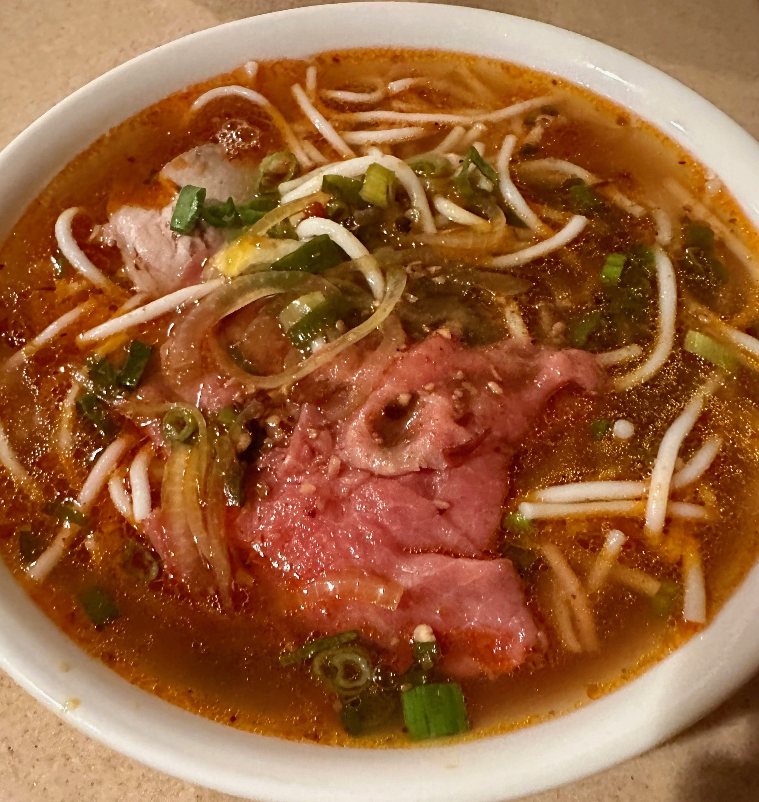 26 February 2024: The menu has a wide selection of pho (beef noodle soup) as well as rice noodle, egg noodle and Udon style noodle soups. There may be nothing in the world as comforting and sustaining as a bowl of steaming hot soup and at Viet Taste, each bowl is roughly the size of a small swimming pool. One of my favorite soups in the entire planet is spicy Hue noodle soup (Bún Bò Huế). i am a food blog says it best: “Bún Bò Huế is a spicy Vietnamese noodle soup that is absolutely addictive and one of the best noodle soups in the world. Unlike the ubiquitous, well-loved and well-known pho, bun bo hue is strangely not as popular. But those in the know, know: Bun bo hue is where it’s at.” The only reason I can think of that Bún Bò Huế isn’t as popular as pho is because not everyone has tried Bún Bò Huế. For aficionados like me and my friend Tuan Bui, it’s our soup of choice at every Vietnamese restaurant we visit.