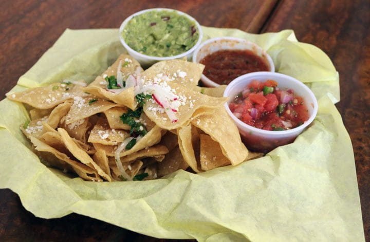 Maya’s menu is hung on framed slate boards on the wall behind the counter where you place your order. It’s an uncomplicated menu devoid of the overly descriptive ingredient lists which seem to characterize contemporary menus. Weekly specials for each day of the week are listed first then appetizers. On the second slate board you’ll find ensaladas, a section called “Nuevo Mexico” which showcases culinary fare from the Land of Enchantment (prepared in the inimitable Dennis Apodaca manner, of course) and finally sides such as papas, fries and slaw. Tortas with salsa headlines the third slate board along with tacos. Three smaller slate boards are dedicated to desserts, “to warm you up,” and specials. It’s not a huge menu, but you’ll have a hard time deciding just which of the beguiling dishes to order.