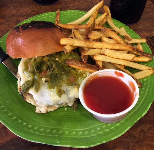 7 September 2017: When two fellow gastronomes whose opinions on food I trus, st explicitly rave about Maya’s Wagyu beef green chili (SIC) cheeseburger, the question isn’t “when are you going to try it?,” but “why haven’t you tried it already?” First, the sage epicure Sarita listed it as one of the best dishes she enjoyed in 2016. Then Larry McGoldrick, the professor with the perspicacious palate, ranked it sixth best among New Mexico’s green chile cheeseburgers. In all honesty, wagyu beef burgers have never done much for me, but that’s probably because it takes a chef of Dennis’s caliber to coax optimum deliciousness out of the mouth-coating unctuousness and nearly obscene richness of this beef. Prepared to your exacting degree of doneness and served virtually naked save for white Cheddar and green chile, this is a magnificent burger which emphasizes all the delicious qualities of beef paired with a flavorful (but not piquant) chile. There’s no mustard, tomatoes, onions or other miscellany to impede your enjoyment. If you love beef, you’ll love this burger.