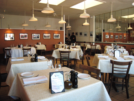 We hadn’t been to Vivace since it changed ownership and, frankly, we were disappointed. The Caesar salad consisted solely of large-leafed, unruly greens, a few croutons, and slivers of grated Parmesan. My wife asked if she could substitute angel-hair pasta with the house speciality meatballs (not available), so she settled for the ravioli instead. I ordered the clams with linguini and the pasta looked as though it had been dredged through a trough of butter (far too rich for my taste). For dessert, we ordered a suggested fruit sorbet (Oops! Sorry, we don’t have any this evening).