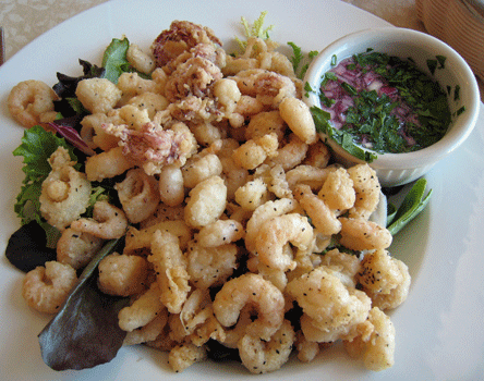 One of the new menu additions, the Gnocchi Con Rucola (pan-fried potato gnocchi with slivered garlic and wilted arugula, Parmegiano Regianno and a light cream sauce) is certainly a keeper. Rucola, the Italian word for arugula, is a spicy, peppery, potent and aromatic salad green that has long been popular in Italy, but rarely used imaginatively in America (salads don’t count). The Rucola provides a very interesting contrast to the deep richness of the gnocchi and the cream sauce.