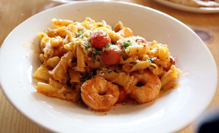 12 February 2017: Previous visits to M’tucci’s restaurants have taught us that any intentions we might have to save some of our entrees for later will go out the window as soon as we taste those entrees. Such was the case with the Shrimp Campanelle (sauteed Gulf shrimp, house heritage pork chorizo, grape tomatoes, lobster cream sauce, basil and Campanelle pasta). At first glance, the entree appeared too big to finish in one meal. At first bite, we knew we wouldn’t be leaving any for later. This is an outstanding dish–one with je ne sais quoi, qualities not easily described. We determined uniquely palate pleasing notes came from the house heritage chorizo and its cinnamony flavor pairing with the sweet brininess of the shrimp and decadent lobster cream sauce. The grape tomatoes provided acidity and served as a nice foil for the richness of other elements.