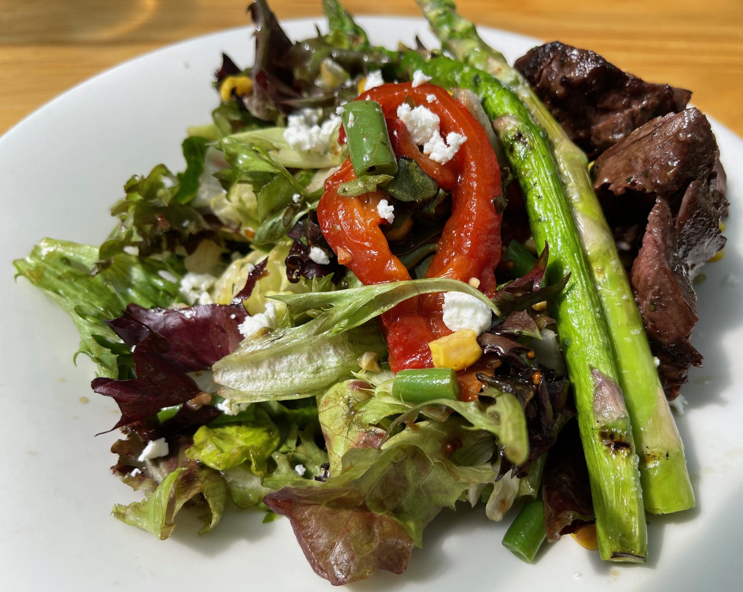 11 March 2021: According to the Oxford Dictionary of Food and Drink in America, mankind’s very first “salad” was popularized way back in the days of the Roman Empire. Then, a simple salad was comprised of raw leafy vegetables covered in salty, oily dressing. The etymology of the term salad, is in fact, sal, the Latin word for salt. Thankfully, salad has come a long way since then. So have diners demands for more creative, delicious and healthy salads. The grilled vegetable salad (mixed greens, Balsamic vinaigrette, roasted red peppers, grilled corn, zucchini, asparagus, Sonoma goat cheese) at M’tucci’s Moderno fits the bill in all three areas.