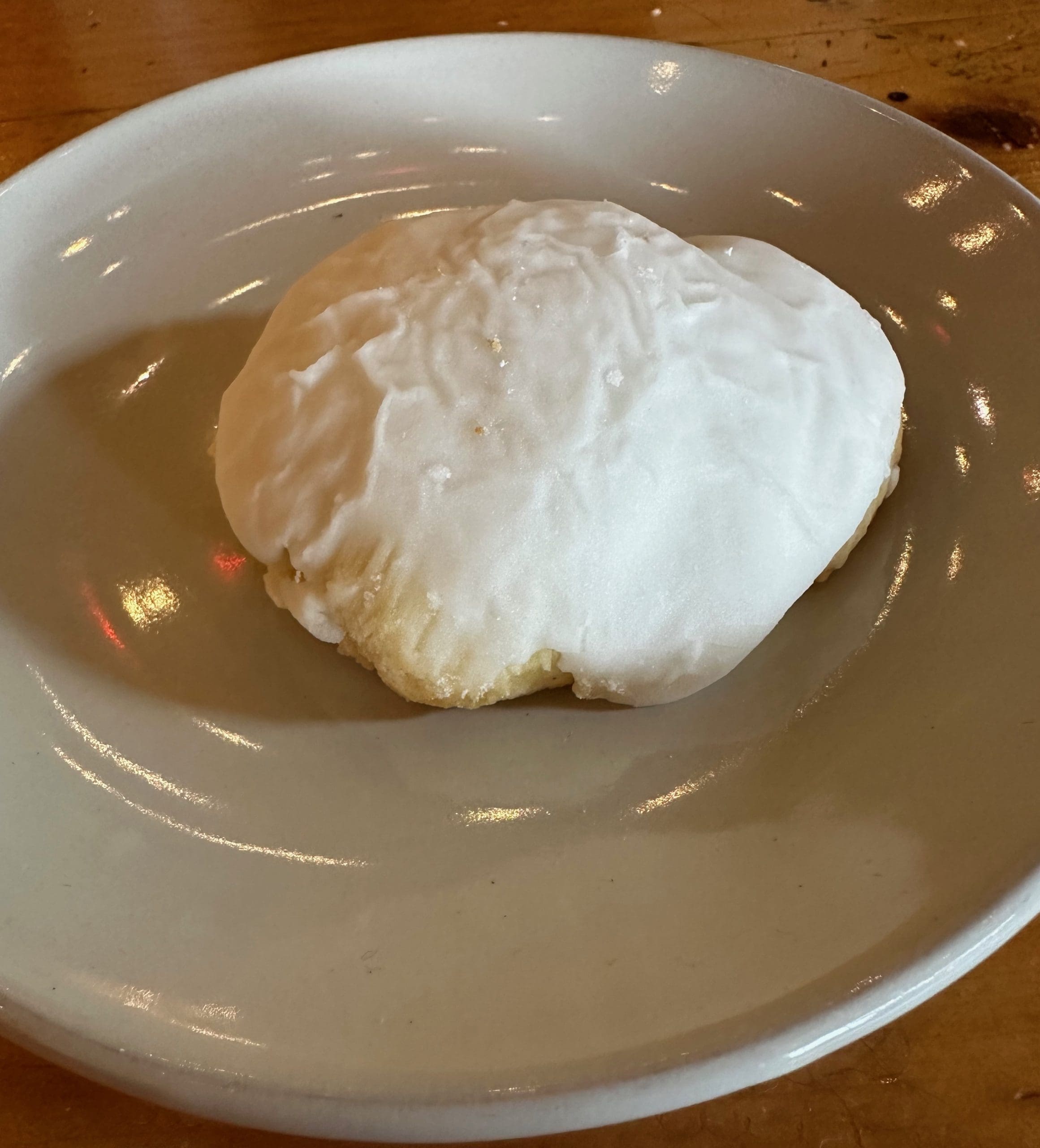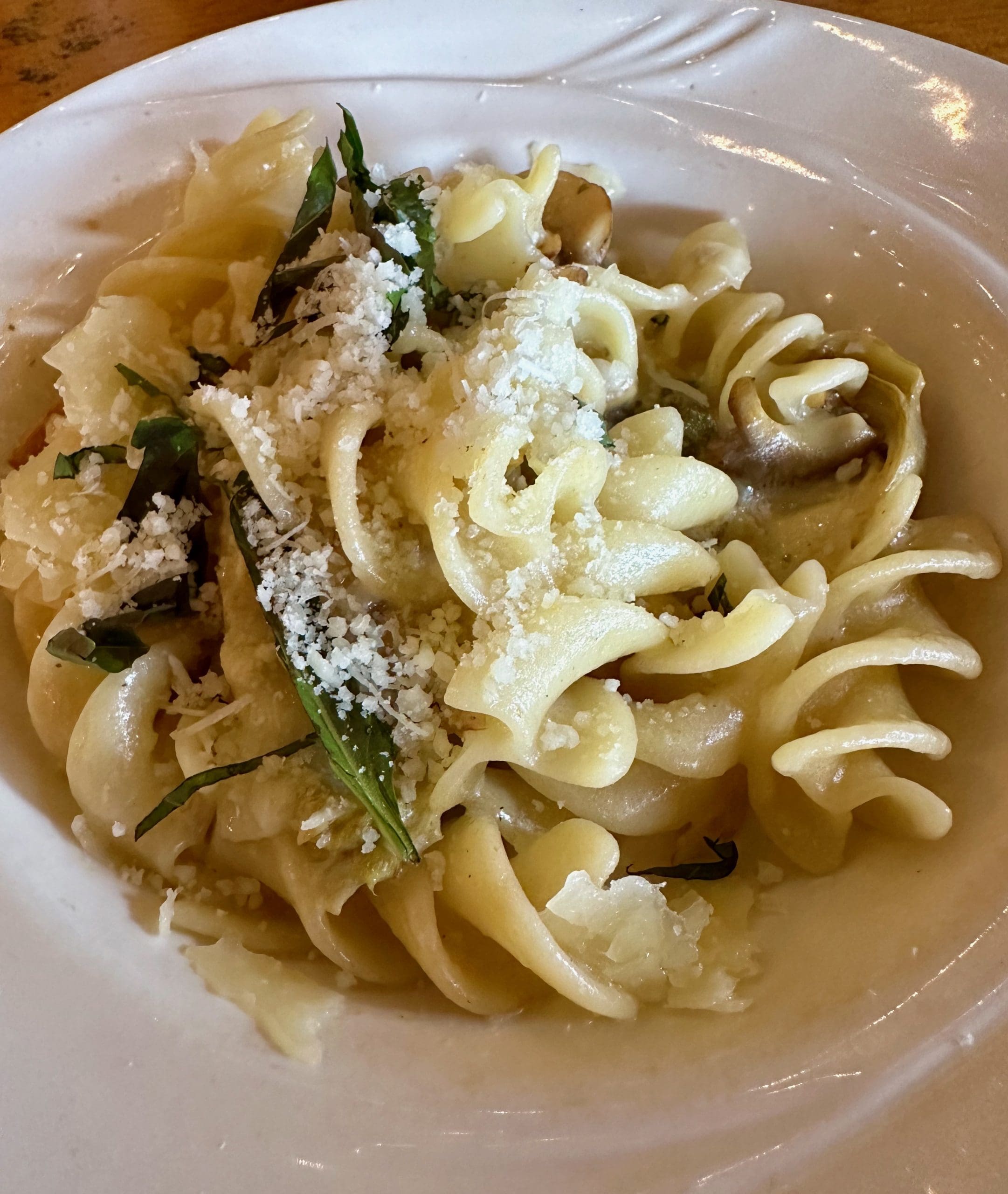24 January 2024: My Kim and I opted for M’Tucci’s Moderno 30-minute lunch which allows diners to choose any soup or salad and one of six lunch entrees for sixteen dollars. Though we were the first diners at the restaurant, everyone in the dining room was served before we were, including a table with about twenty senior citizens. I joked that my entree, lemon artichoke fussilone (roasted artichoke, porcini, white mushrooms, imported capers, basil, mild, light lemon cream sauce, handmade corkscrew pasta, shaved Parmesan) must be extremely challenging to make or maybe the chef trekked to Italy’s Amalfi Coast for lemons. During our wait we had the opportunity to visit with Bob of the Village of Los Ranchos and his beautiful granddaughters Mackenzie and Bailey. It made the wait seem far shorter. The fussilone is delicious entree, albeit not one I’ll order again if in a hurry. Increasingly I’m enjoying lemony Italian dishes, a nice alternative to all my red sauce favorites.