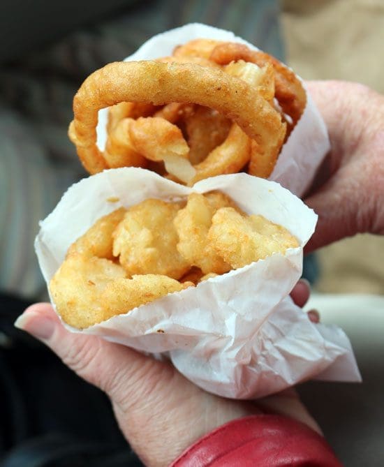 1 April 2017: Fried stuff–onion rings, tater gems and fried zucchini–are a cut above what you find at most burger emporiums. The fried zucchini resembles the fried mozzarella you might find at an Italian restaurant, but bite into any of these golden hued little logs and the inimitable flavor of zucchini greets you. The fried zucchini is served with a ranch dressing though it’s not absolutely necessary. The biggest difference between tater tots and tater gems seems to be shape and size. Tater gems are larger and more “roundish.”