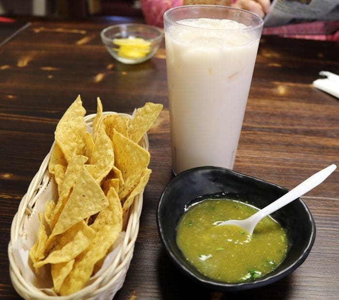 No sooner are you seated than chips and salsa are delivered to your table. The salsa is a luminous green, a telltale sign tomatillo is its chief ingredient and not tomato. The salsa is terrific with a nice balance of heat and tanginess from a squeeze or two of lime. Cilantro lends its unique freshness. The chips are crisp and just a bit on the salty side. El Maguey offers several options for washing down the chips and salsa. Alas, the only aguas fresca on the menu are Jamaica and horchata, the refreshing and sweet, cinnamony beverage. As with most horchata served in Albuquerque restaurants, it does taste a bit like the cold milk at the tail end of a bowl of Captain Crunch cereal.